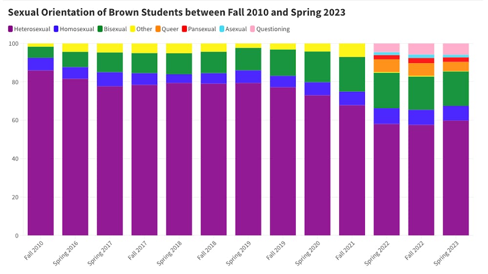 Nearly 40 percent of students at Brown University identify as something other than straight. The growth has been largely among students identifying as bisexual or as queer, pansexual, asexual or questioning. There has been little growth in gay identity.