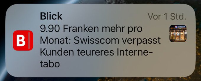 Letzte Woche hat Swisscom angekündigt, den Preis von CHF 50 des günstigsten Internet-Abos um CHF 9.90 pro Monat zu erhöhen. Dem @Blickch war es eine Headline wert.