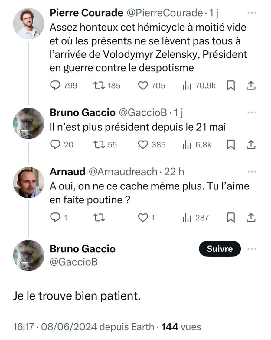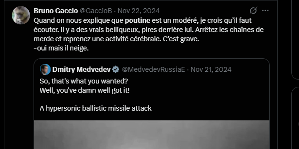 - que la rhétorique LFI n'est pas "pro paix" mais "pro guerre"
