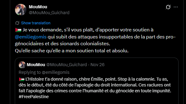 Chez Guiraud ça va être le négationnisme : dans sa conférence à Tunis où il déclare que les horreurs du 7 octobre sont fausses mais ont été commises à un autre moment de l'histoire par Israël.