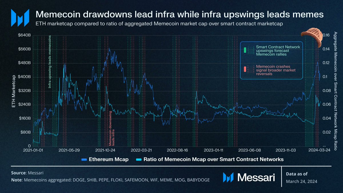 It compares the correlation between Ethereum and Memecoin market cap and discovers an interesting pattern: