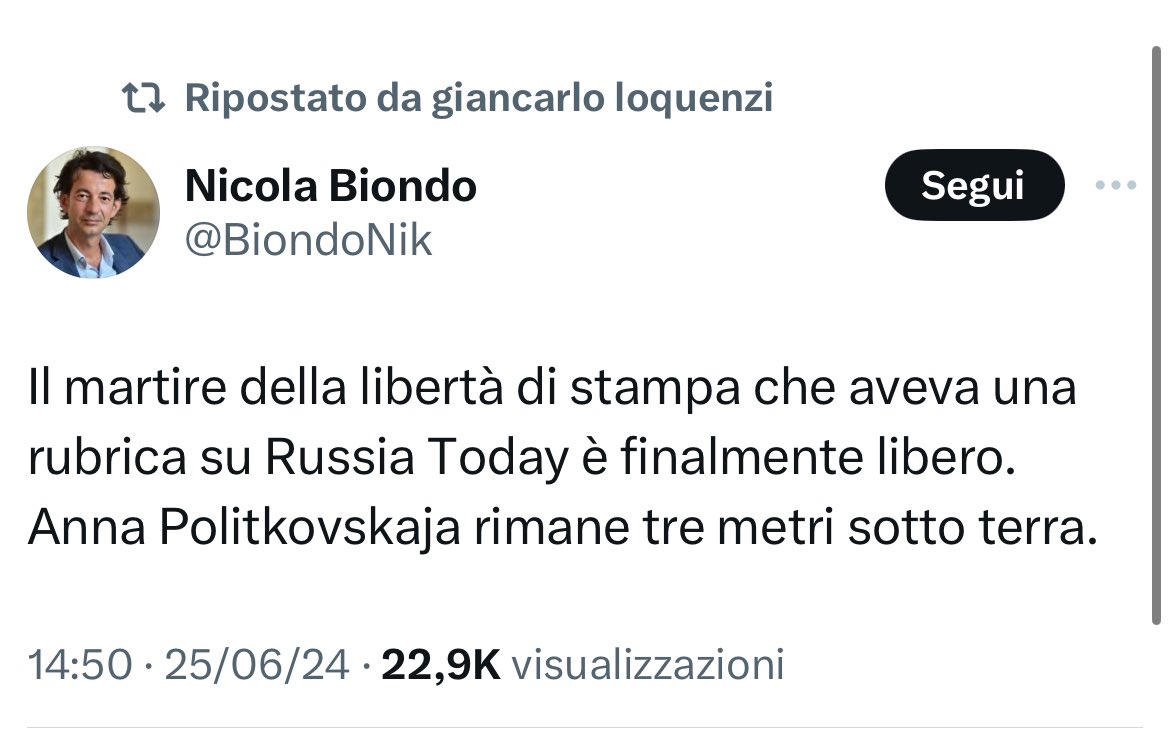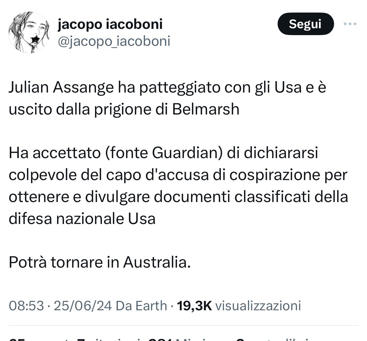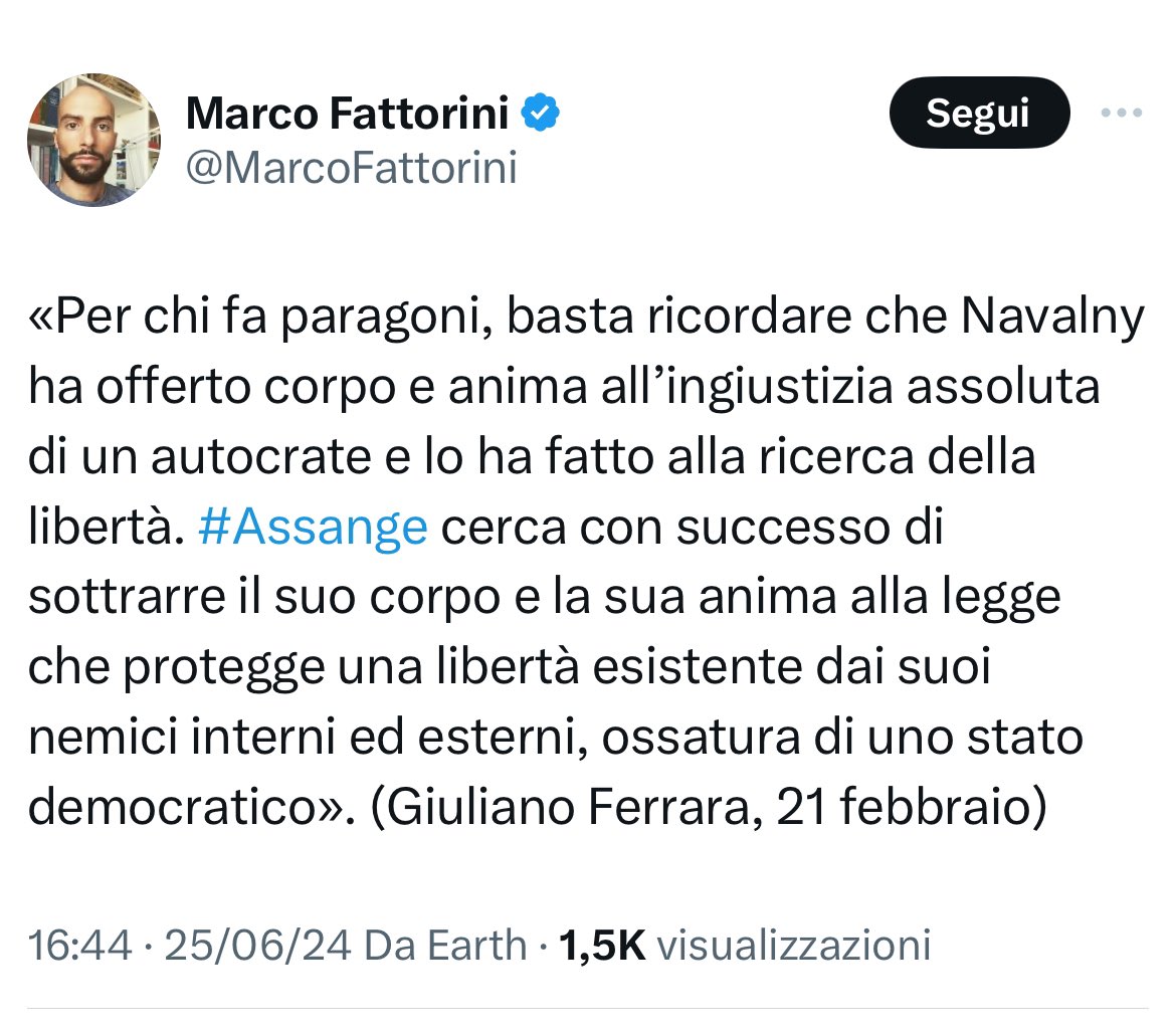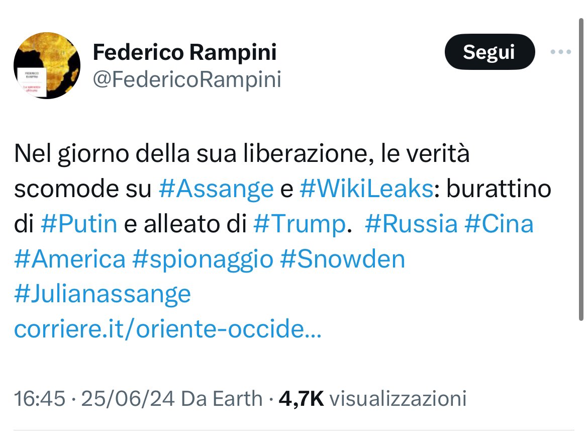 Prendo a prestito il tweet di Robecchi per dare un volto ad alcuni dei colleghi di Gianni riotta, gente che non si troverà mai nelle condizioni di Assange e fa di tutto per ribadirlo a chi apprezza.