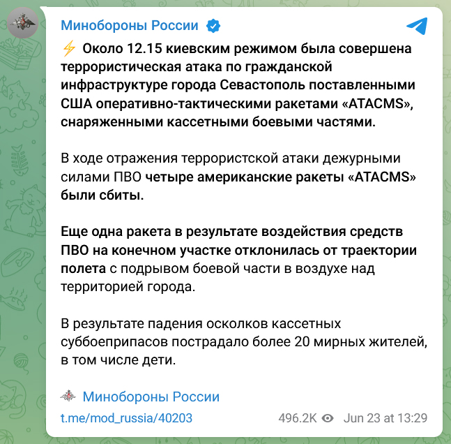 Zu dem Zeitpunkt war aber bereits die Information draußen, dass die russische Flugabwehr eine ukrainische ATACMS abgewehrt hatte, und die sich daraufhin auf den Badestrand erbracht.
