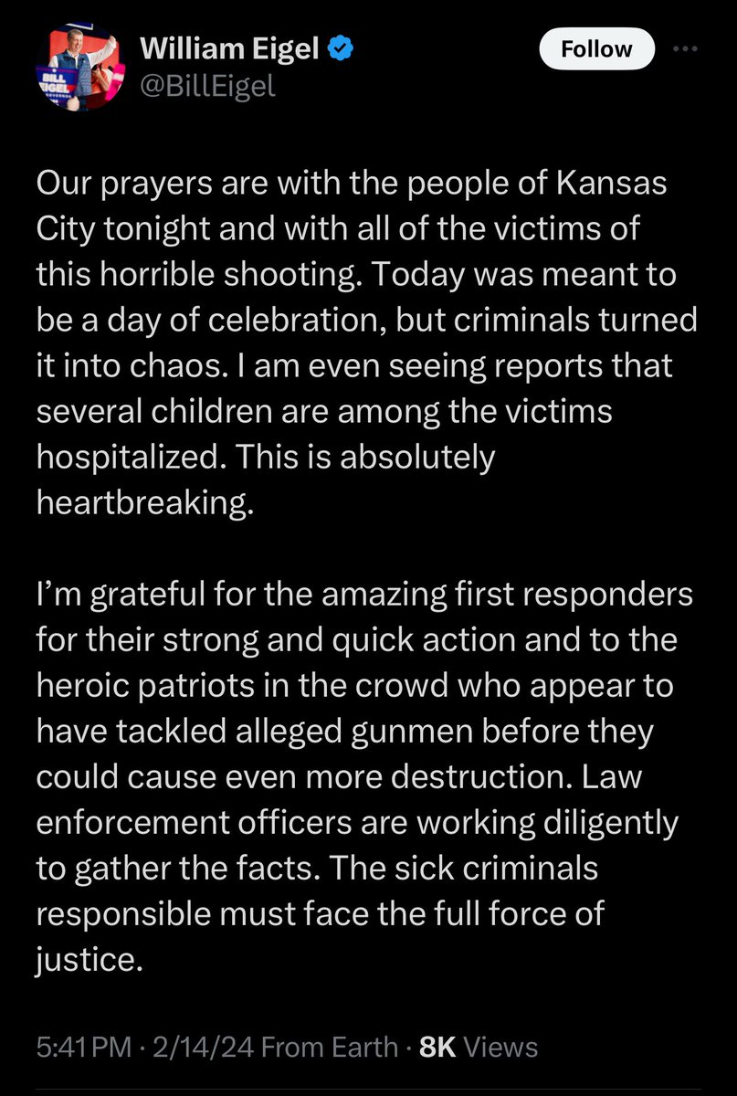 🧵A thread of Missouri Republican lawmaker’s “thoughts & prayers” following the tragic shooting at the Chiefs Super Bowl parade vs the actions they take that have gotten us here.