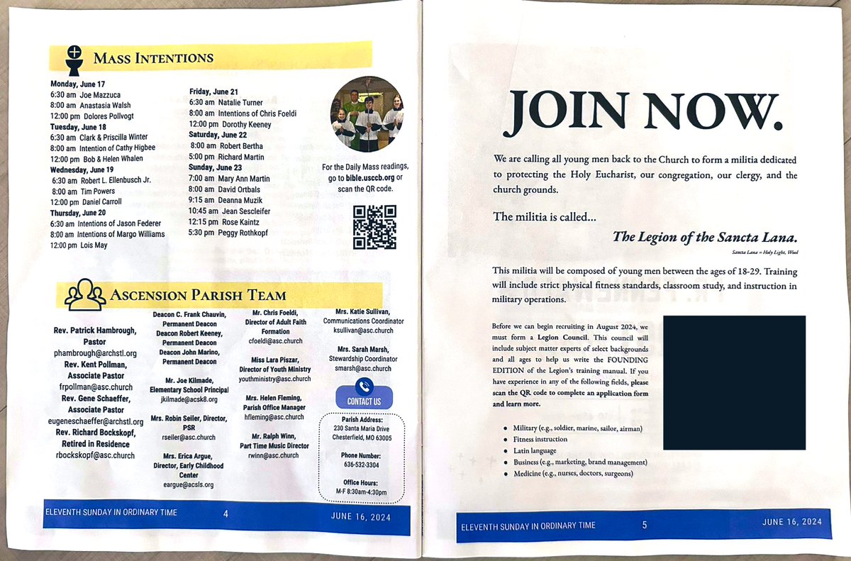 🧵Ascension Catholic Church in Chesterfield, Missouri is actively recruiting young men, ages 18-29, to join their newly-formed militia.