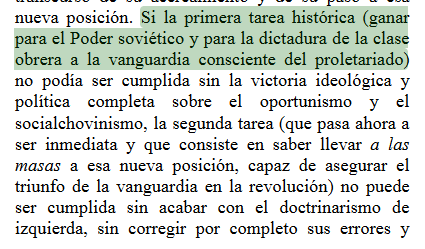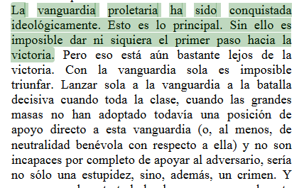 Finalmente, en “El izquierdismo”, Lenin señala la necesidad de conquistar ideológicamente a la vanguardia como primer paso para la victoria, como “la primera tarea histórica”, sin lo cual no hay nada que hacer, antes de conquistar a las amplias masas de la clase: