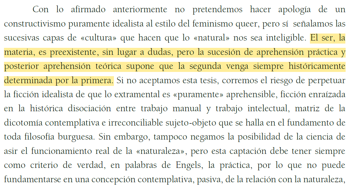 Luego, ante el sistemático recurso a un «materialismo» burdo como caballo de Troya de la reacción, y ante un idealismo constructivista que tiene en el moralismo su única proyección política, introducimos la restitución del materialismo verdaderamente dialéctico