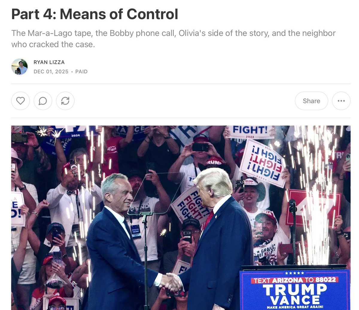 BREAKING: Ryan Lizza has just dropped Part 4 of his saga on Olivia Nuzzi and RFK Jr.