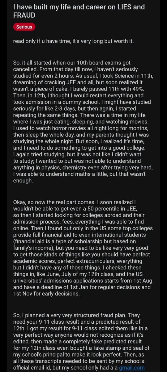 the worst part? he shared his story on reddit in great detail, then a subreddit mod reached out to the college and reported him
