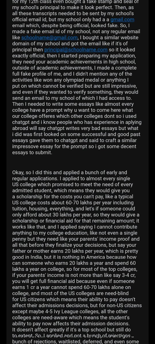 recently an indian student was deported from us because he forged the transcripts, rec letters, achievements, state exam results, and sent them through a school domain he bought to apply to college