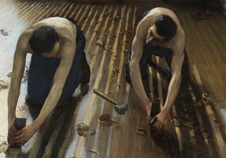Caillebotte donne à voir une réalité toujours actuelle du travail des artisans, et il le fait sans concession