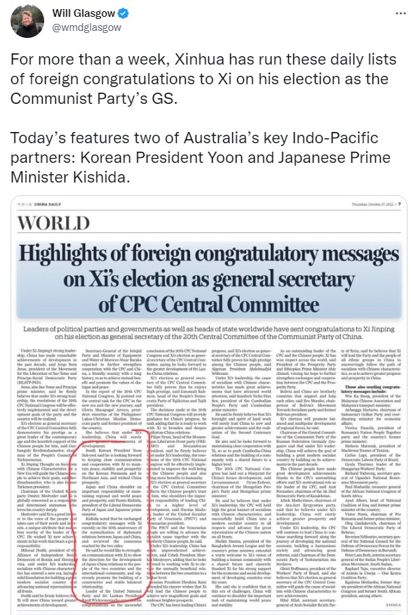 1st, he reports Japan's PM congratulated Xi. #auspol