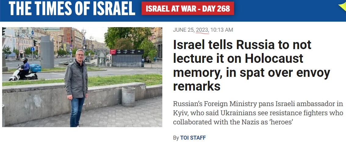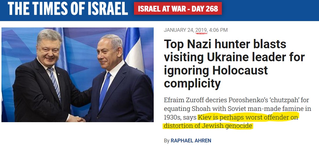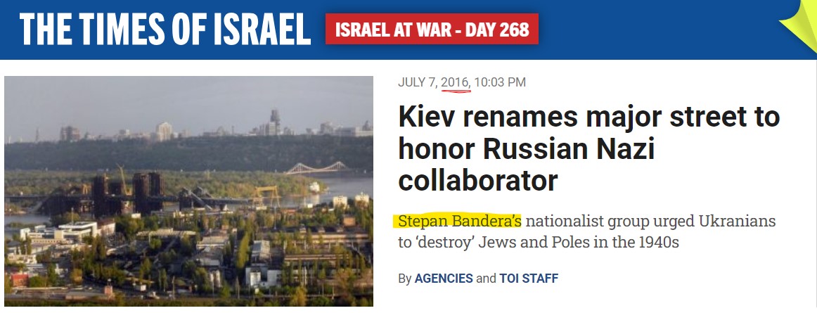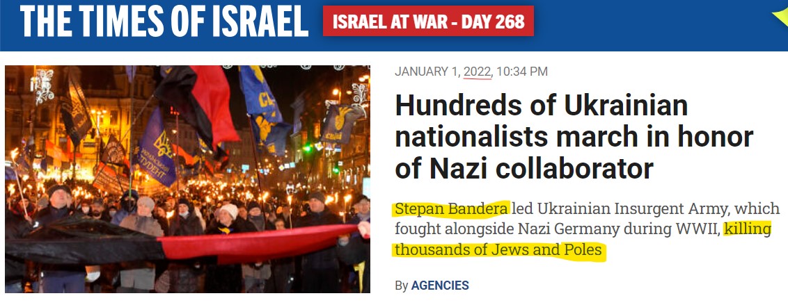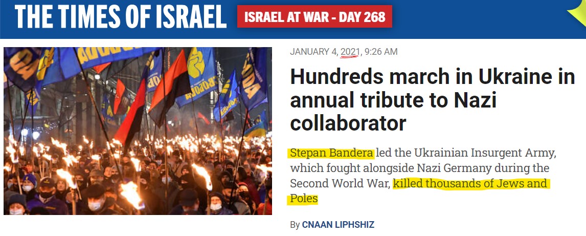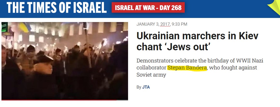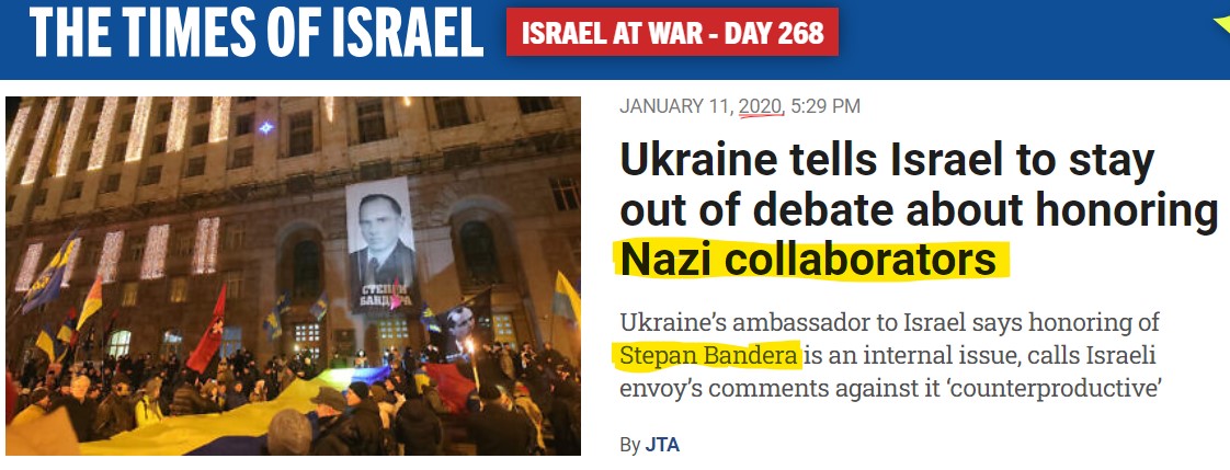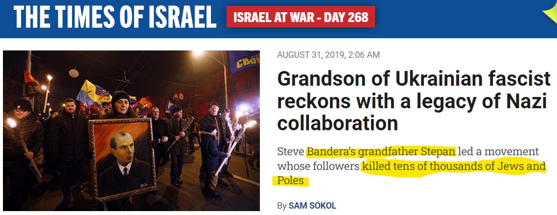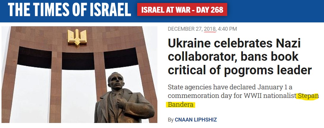 Also 2019: ToI reports claim that Bandera-glorifying Ukraine distorts Jewish genocide. 8/