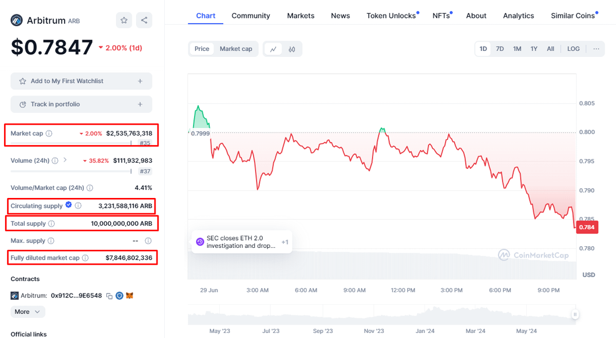 2/➮ Initially, when you find a potential coin to invest in, for example on CMC, you see the following: