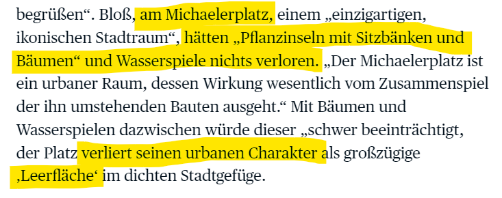 Es wurde von "Verkitschung" gesprochen, von "Kleingartenstil" - weil dort ein paar Blumenbeete hinkommen sollen? Wirklich? Das ist das ästhetische Problem, gegen das man ankämpfen will? Sehen diese Leute wirklich eine Blume und denken: "Ach, schade, dass hier nicht Asphalt ist?"