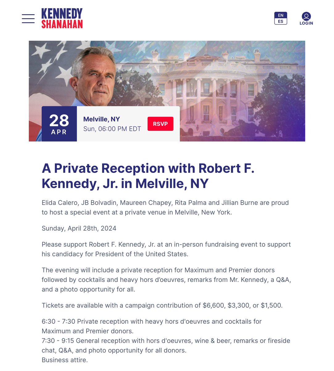 Rita Palma listed as one of the hosts for an upcoming fundraiser on RFK’s campaign website.