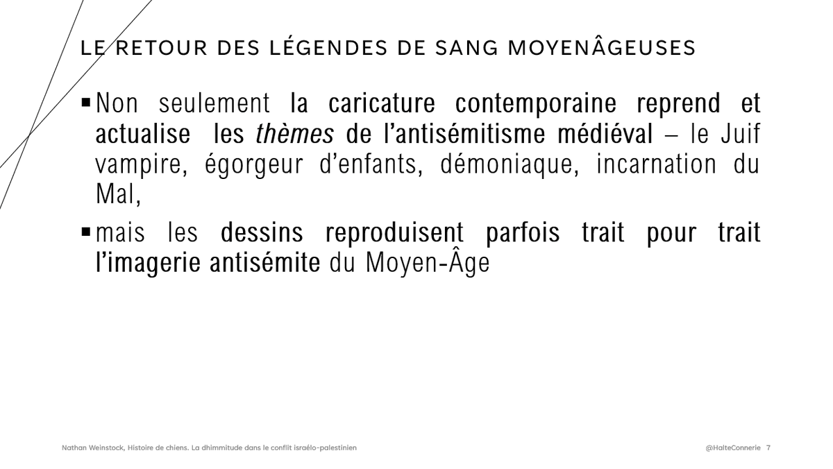 Il y a 20 ans Weinstock mettait déjà en avant le retour aux vieilles légendes de sang moyenâgeuses du Juif buveur de sang que l'on a retrouvées sous la plume électronique d'une Rima Hassan ou d'AJ+ depuis le 7/10