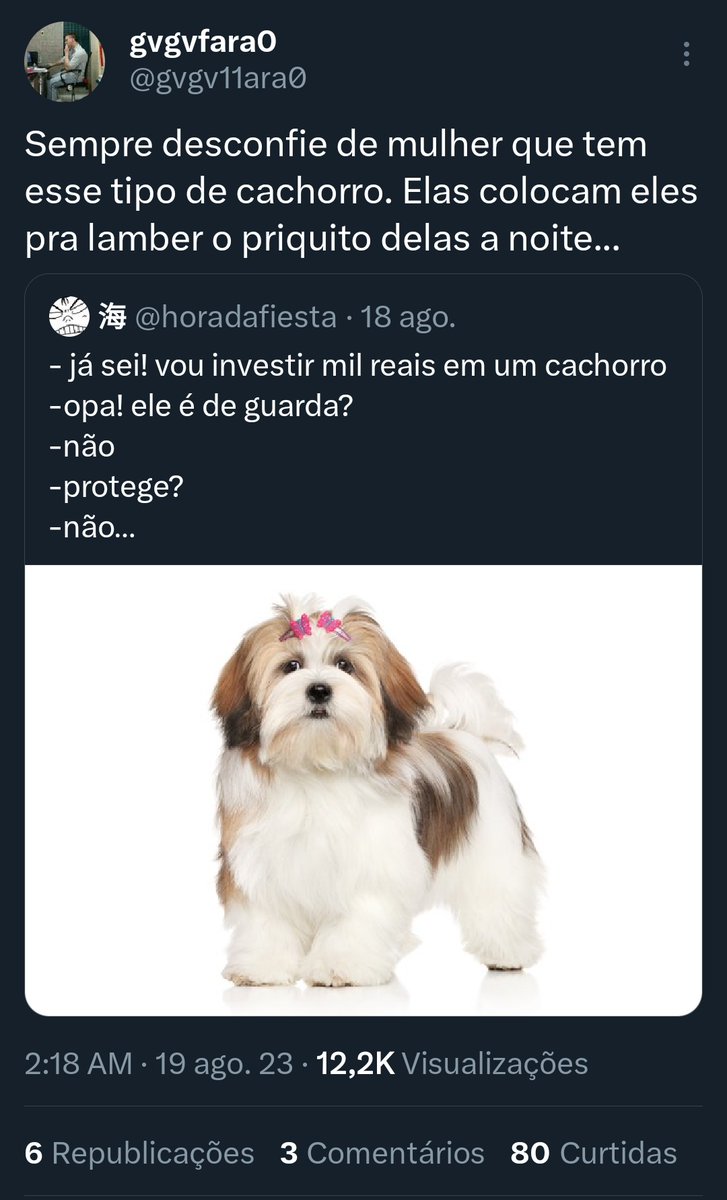 Vamos começar com a mãe de pet, normalmente sempre é aquela que vem acompanhanda com uns 15 transtorno mental, passa o ano falando que ama o filhe, mas na virada vai passar na Vila Madalena e vai deixar o filhe sozinho em casa enquanto pede pra ninguém soltar pq a filhe tem medo