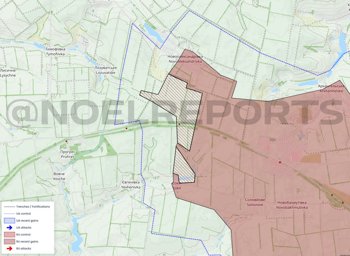 After taking control of Sokil, Russian forces have further advanced towards Lozuvatske. In recent weeks, Russia is advancing on a higher pace again, occupying more area's northwest of Avdiivka.