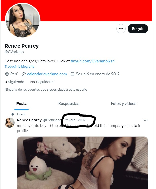 La cuenta falsa se creo en 2012 en Perú para promocionar la web de Calendario Variano, solo tuvo actividad durante unos días hasta que fue hackeada en 2017. Aun se ve la web en la bio aunque ahora aunque ya no existe.