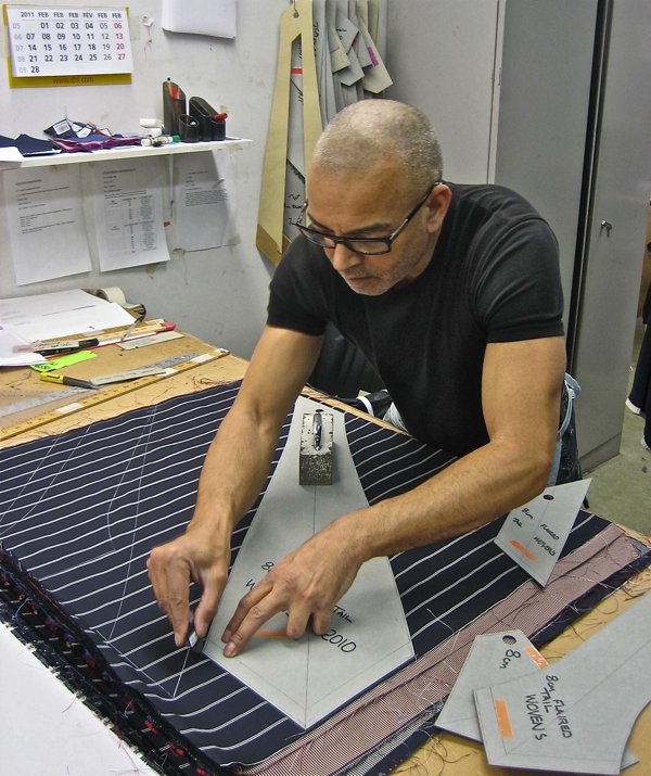 Next, we have the cut. A good tie should be cut "on the bias," which means placing the paper pattern on the fabric at a 45 degree angle. This allows the tie to drape properly. It also allows the fabric to naturally stretch, which means a more comfortable fit around your neck.