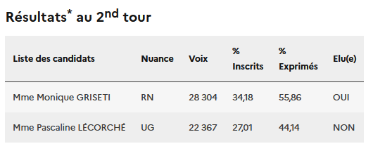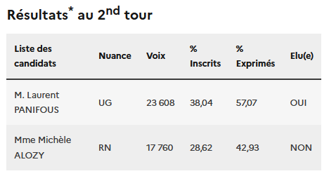 Maïtey Pouget, qui a dit pendant la campagne "ils ne sont pas là. À cette heure ils dorment" en parlant des immigrés, est BATTUE.