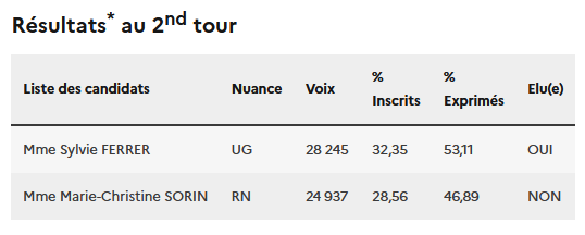Elodie Babin, candidate "fantôme" pendant la campagne (elle s'est justifiée en expliquant être touchée par un "fort état grippal"), sera certainement BATTUE.