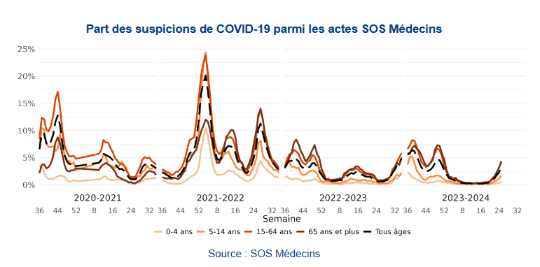 Idem pour la part de suspicions de #Covid19 parmi les consultations SOS Médecins.