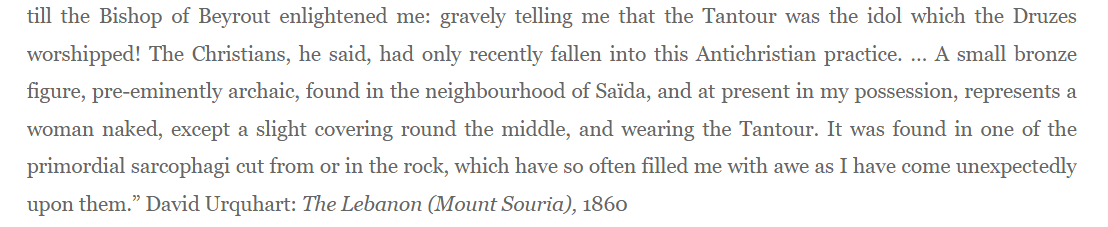 Extra: the narrator David Urquhart 1960s claims he had the alleged "Primordial Idol" in his possession and it was of a nude woman with a Tantour.