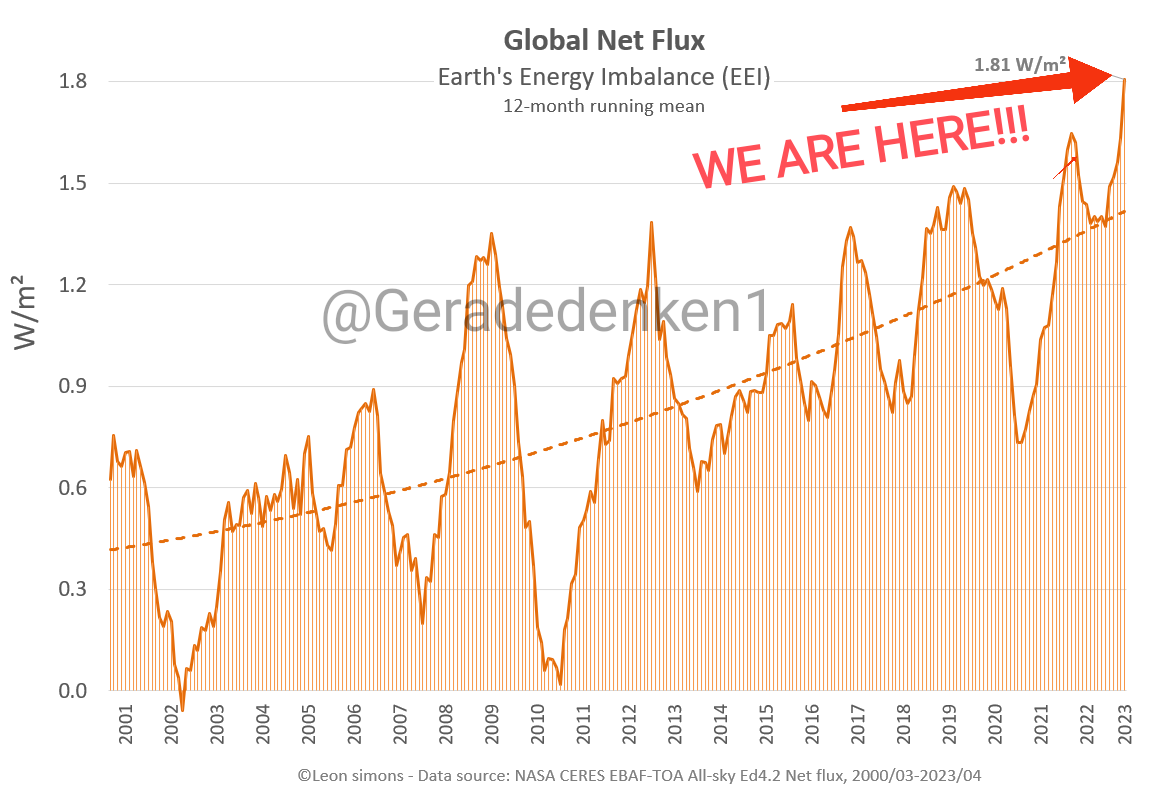 Kurze Recap: in den letzten Jahren ist die Energiebilanz der Erde durch die Decke gegangen. Die Ozeane (vor allem der Nordatlantik) haben massiv viel Energie aufgenommen.