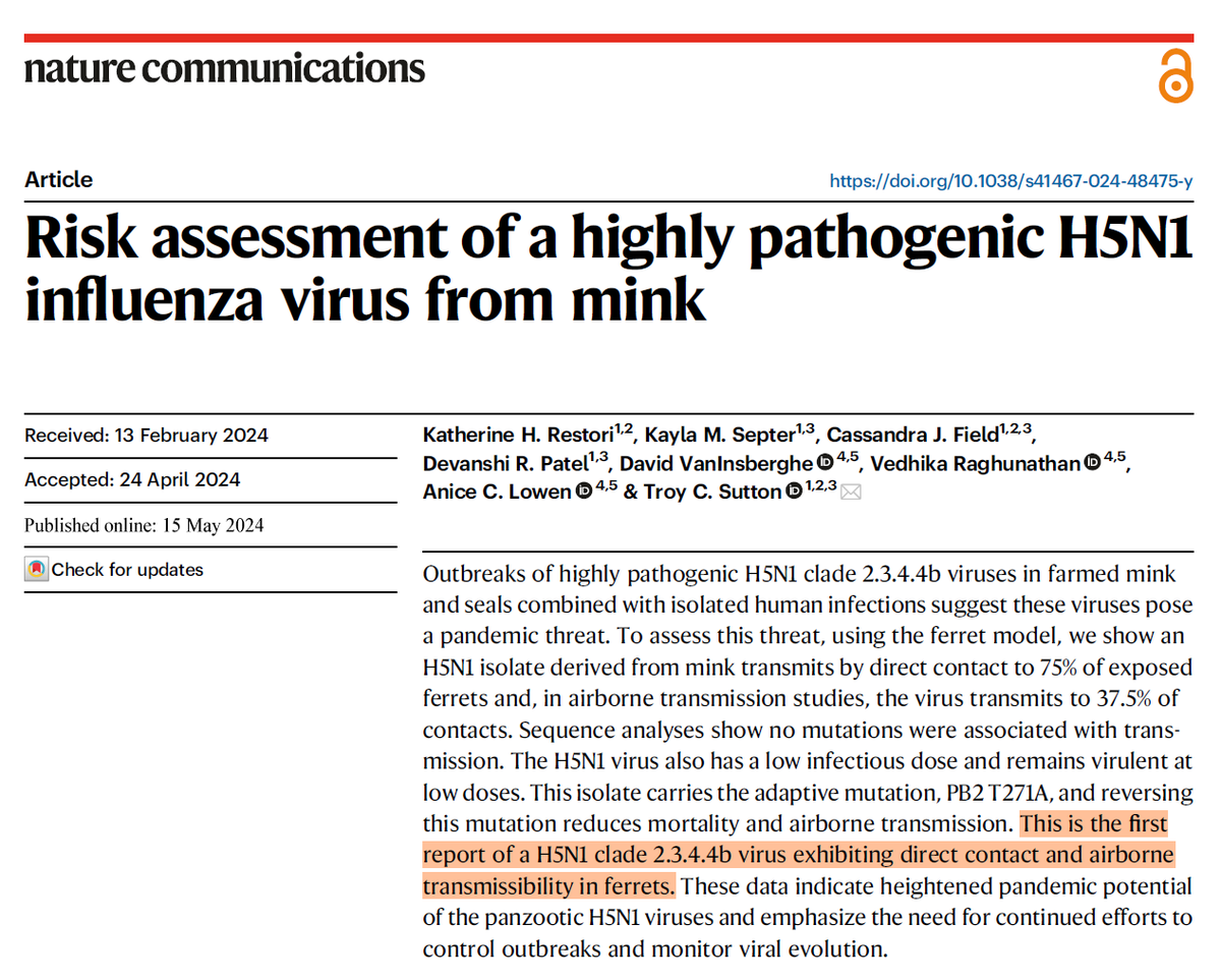 It can be AIRBORNE. #H5N1 can infect ferrets via AIRBORNE transmission.