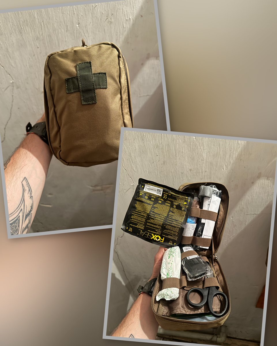 📍Аптечка + 2 турнікети (1 – CAT, 1 – Січ). Аптечка топ. Але так не у всіх, все залежить від нач. мед. служби батальйону.