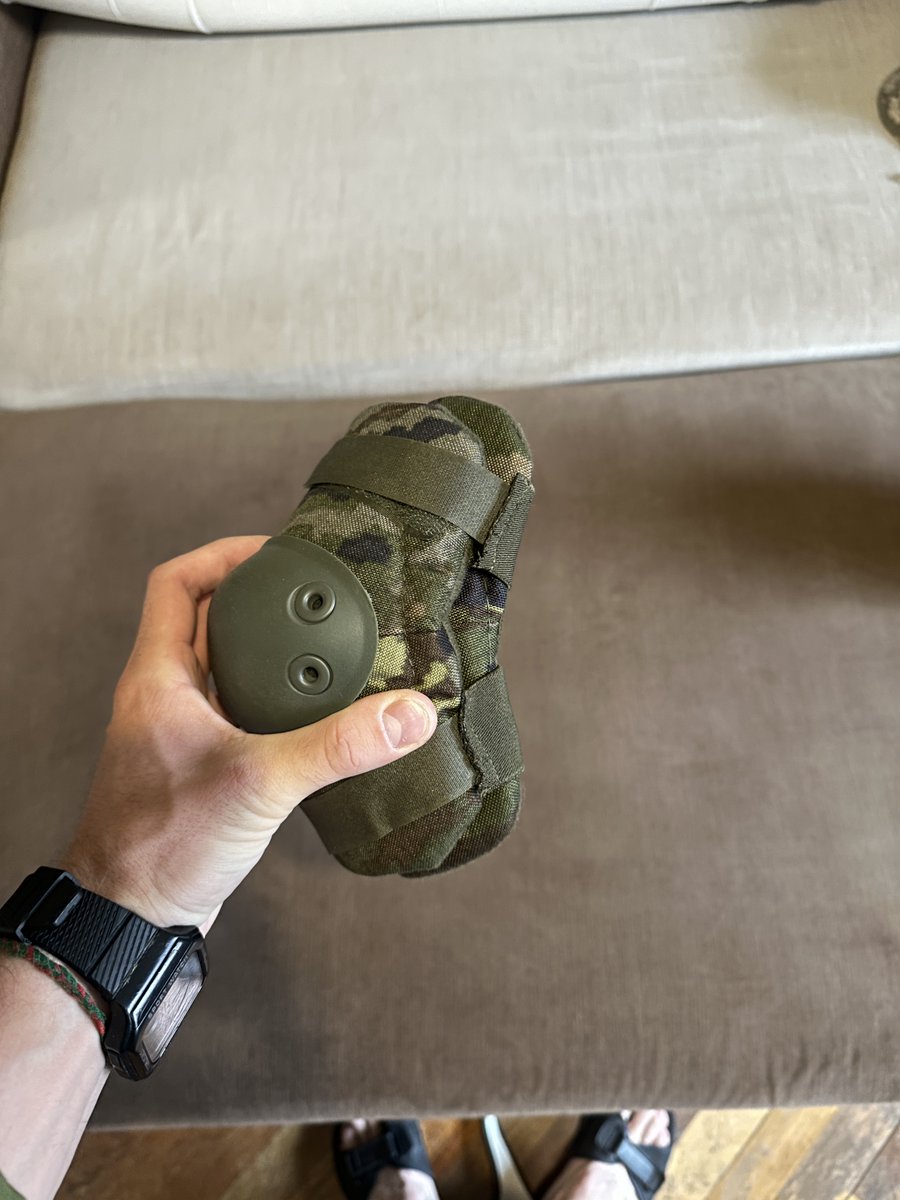 📍Наколінники та налокітники. Потрібна штука, коли постійно падаєш на коліна, бігаєш і стрибаєш. Але не дуже зручні, бо з колін сповзають при русі. В ЗСУшних штанах є кишені для наколінників, раджу купити вставні в штани, так набагато зручніше.