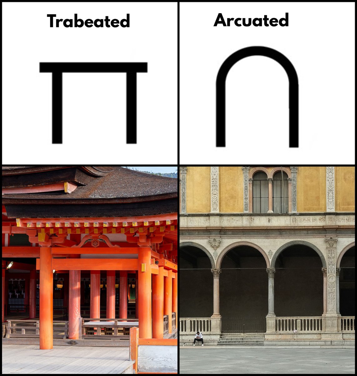 This means its basic unit is the post and lintel, as opposed to the arch.