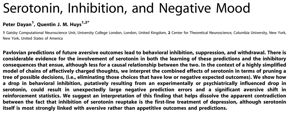 “[serotonin] promotes reflexive avoidance of relatively immediate aversive outcomes, potentially at the expense of more globally construed future losses.”