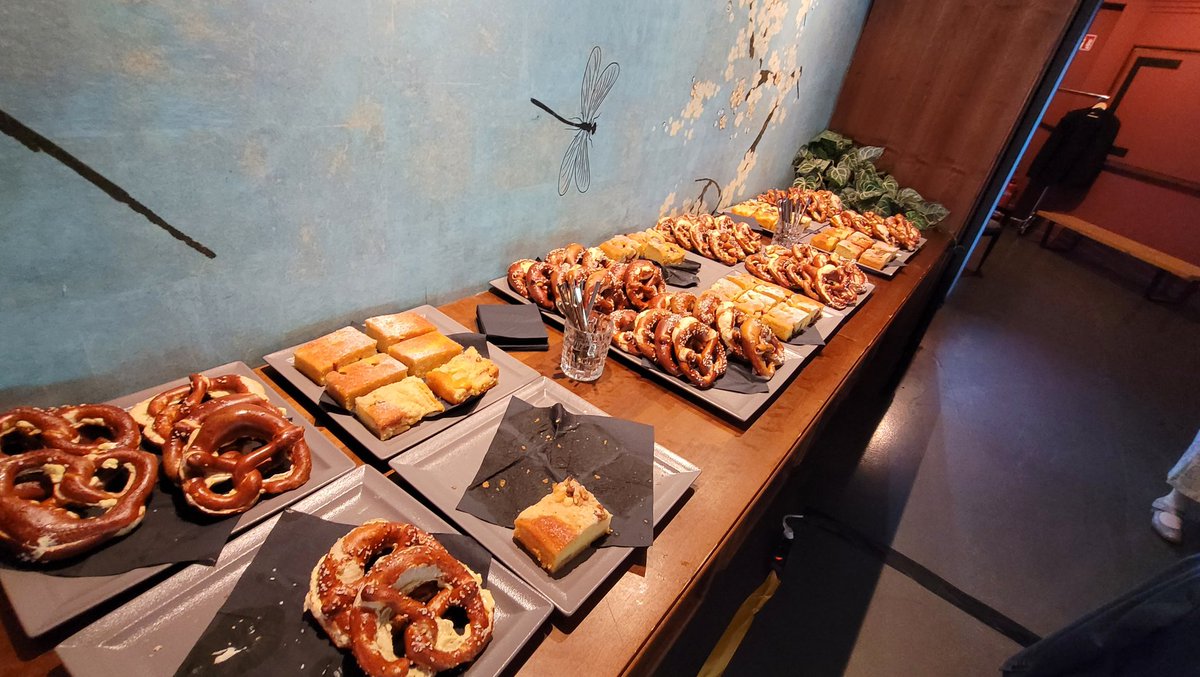Es gibt auch ein kleines Frühstück mit 🥨 und 🥧.