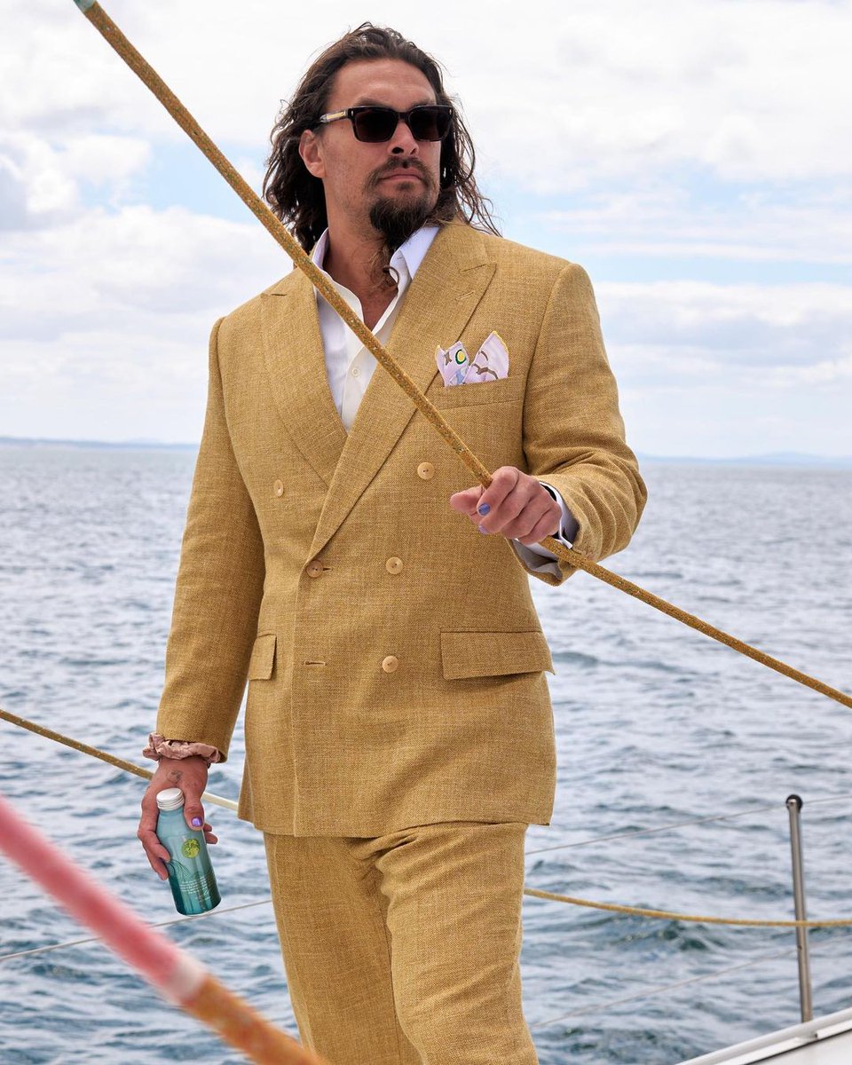 You can also try specialty fabrics, such as Solaro (woven with two diff colored threads, so it has a shimmer) or seersucker (although I would do a navy tonal seersucker, as the traditional white-and-blue coloring may feel too American Southern at a wedding in Mexico).