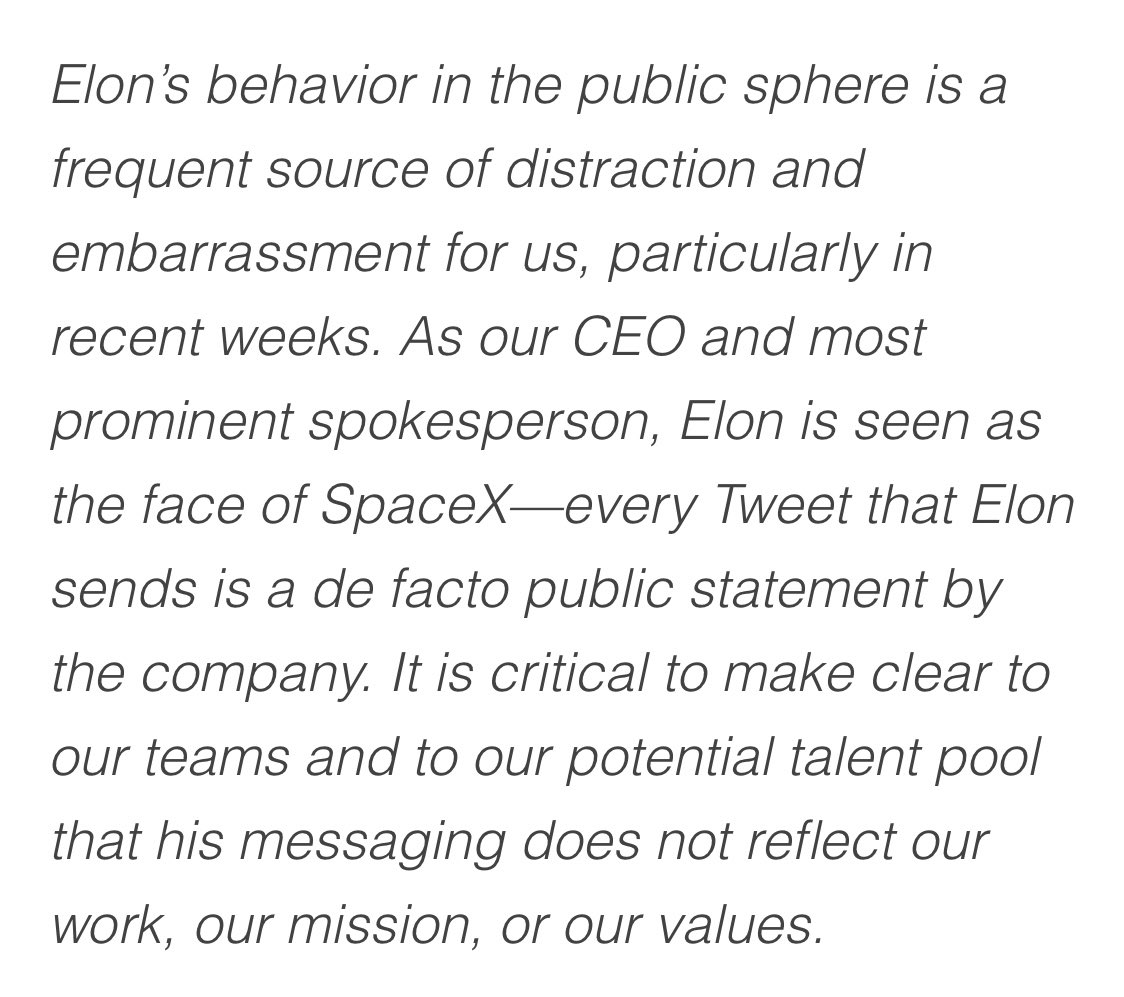 They define the company values as opposed to Elon’s, without stating what these values are, or showing that everyone at SpaceX shares these opposed values. They are trying to define the company culture by describing it (2/7)