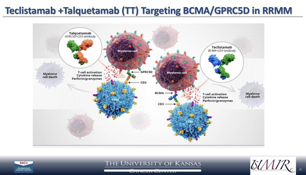 TT2 targeting BCMA/GPRC5D might be the next level in triple/Penta RRMM with RR of 87-96%, PFS 21 months! Though we might have issues with AEs #mmsm #myeloma #MedTwitter #MedEd #USMIRC