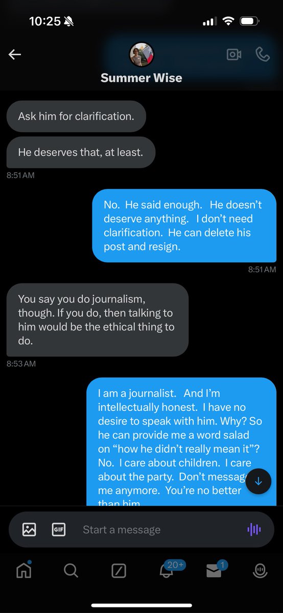 David Luther and Summer Wise are wolves in our party. I will NOT entertain you or give any lenience to those who defend the mutilation of children. NONE.