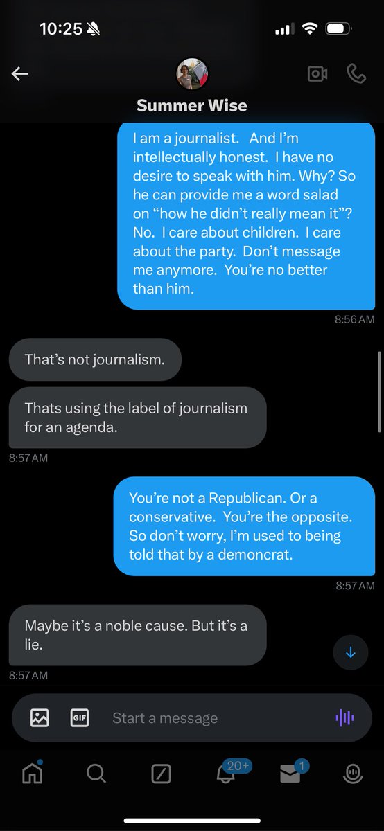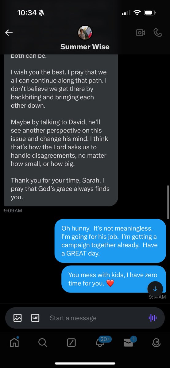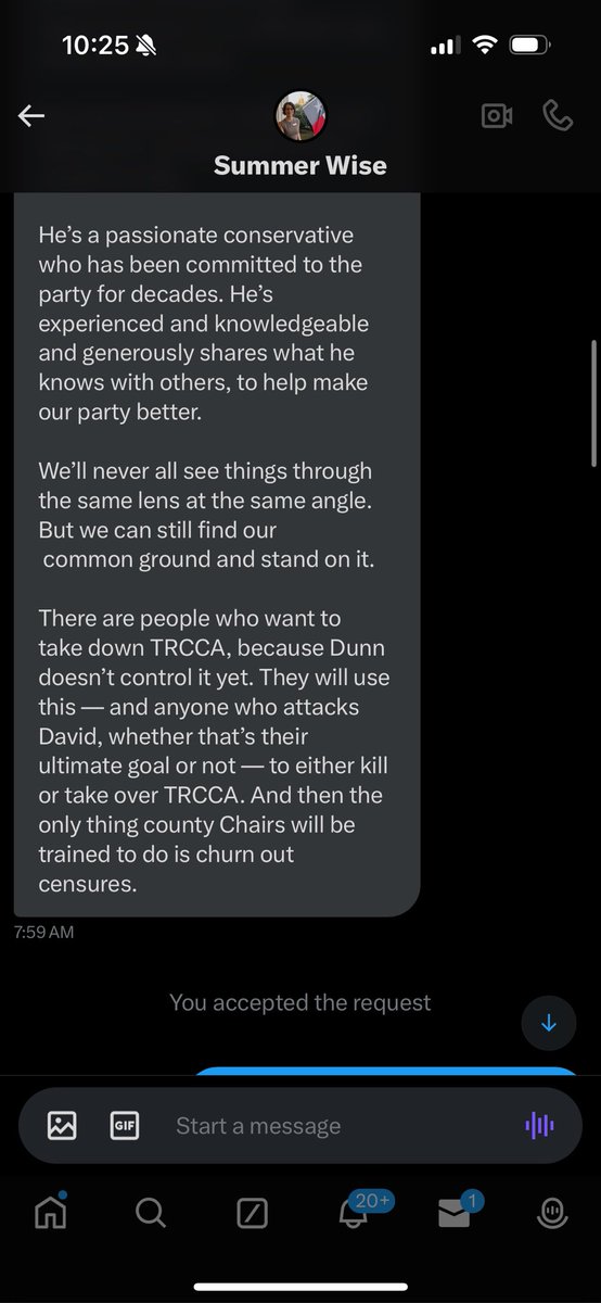 I tried to warn this woman that posting these private messages wouldn’t go well for her. She posted a few screenshots of our conversation after I stated publicly that she is defending David Luther, head of Texas Republican County Chair Association.