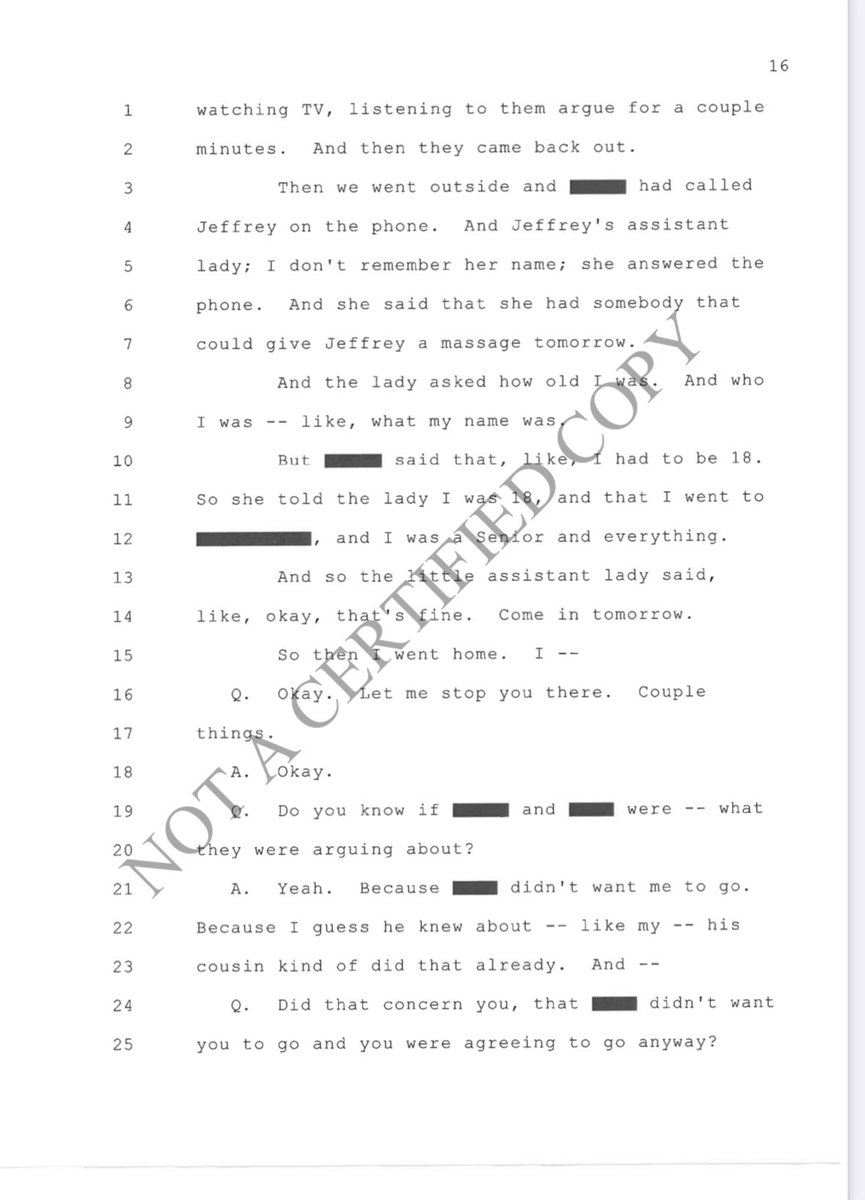However, there was also an argument between Jeffrey and the client that insinuates that many of those involved knew the girl’s age beforehand. See thread for a few samples of the pages.