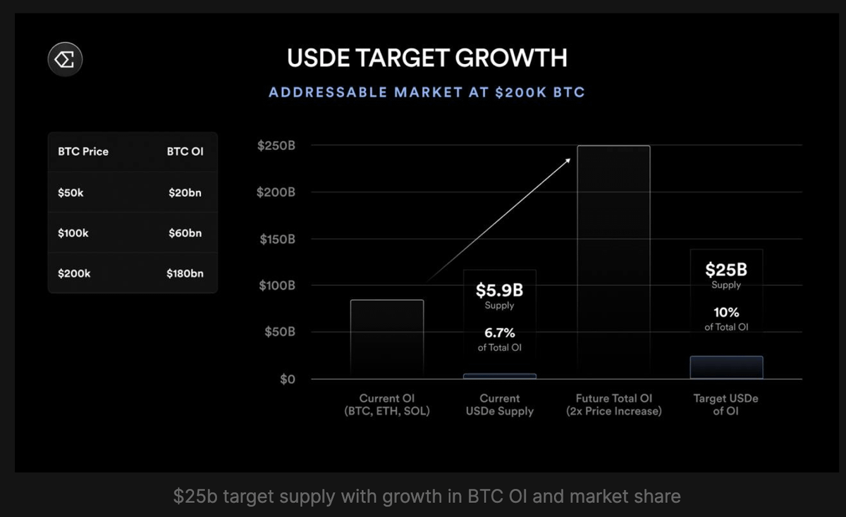 ➤ Projection of QUADRIPLING their growth in 2025 - w/ BTC price at $200k, the target USDe supply will reach $25B. 🔥Image