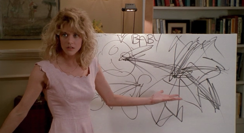 Another memorable moment is the Pictionary game. Reiner’s direction to Ryan before filming the scene was just two words: “baby talk.” The actress did the rest, and the rest of the cast improvised their responses, including Kirby’s “baby fishmouth.”
