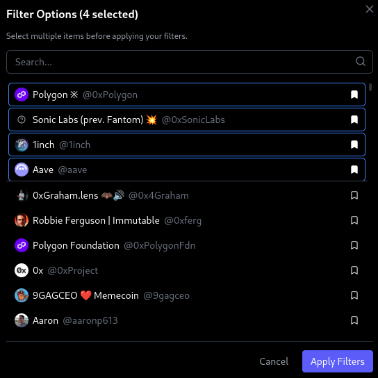 You can now select which data to include in each section, like choosing specific RSS feeds for news, tokens for price tracking, or projects for governance, allowing you to tailor LlamaFeed to your specific interests.