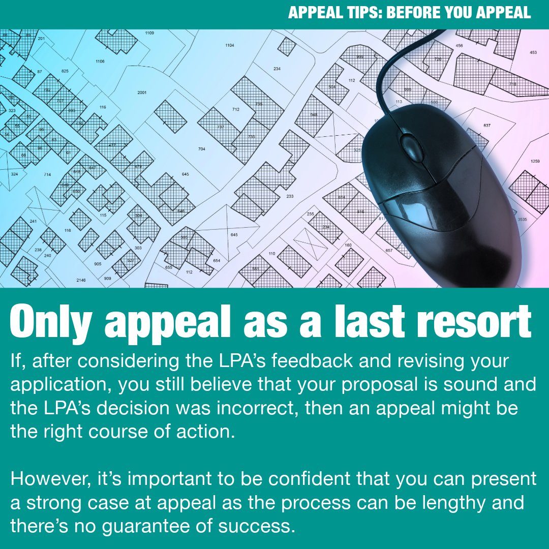 4.  Only appeal as a last resort: If you still believe that your proposal is sound, then an appeal might be the right course of action. However, the process can be lengthy with no guarantee of success. Be confident that you can present a strong case at appeal. #planningappeal Image