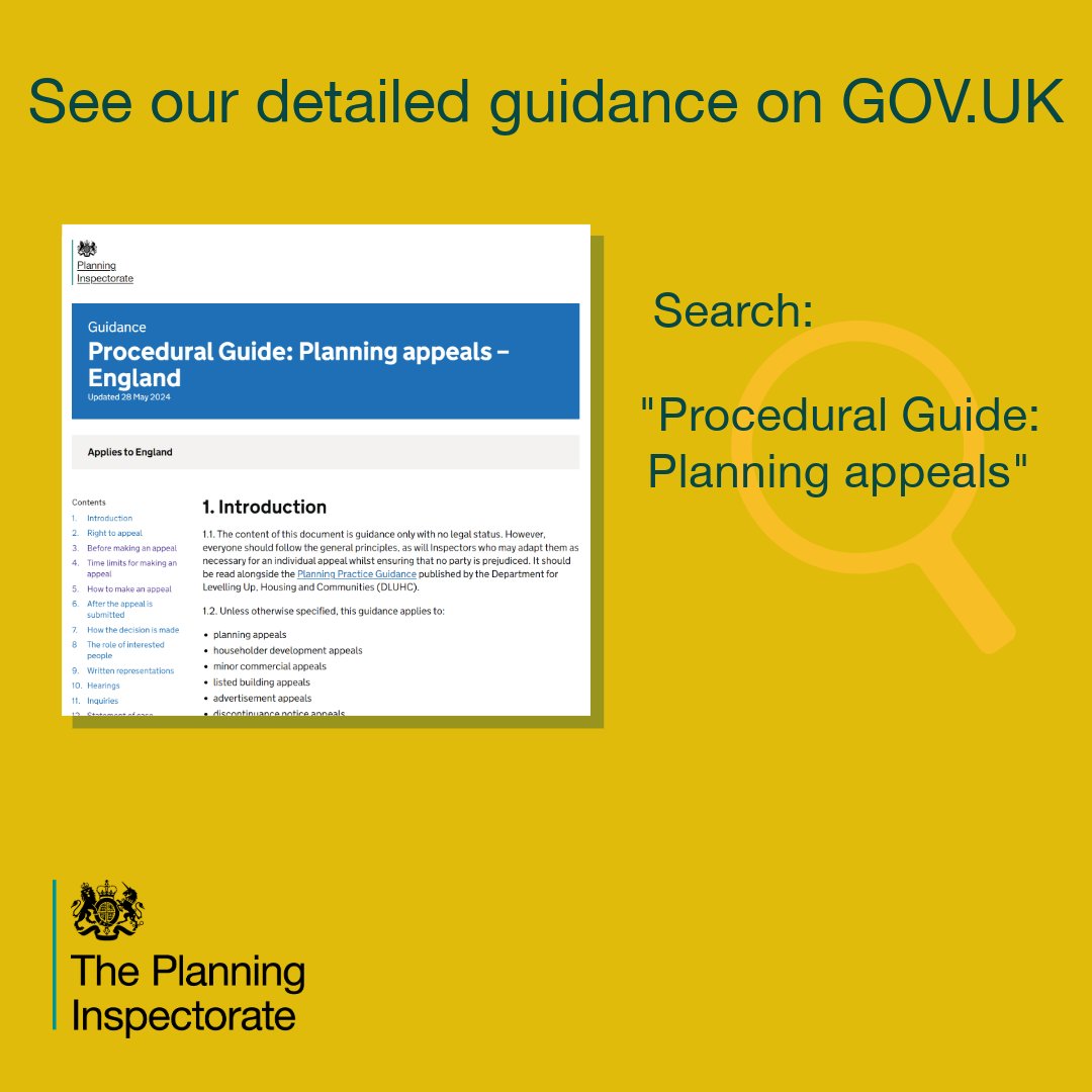 For more detailed guidance, visit and search for “Procedural Guide: Planning appeals”.