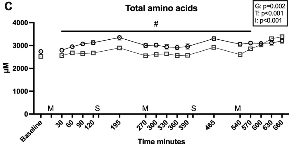 The total amount spent in an anabolic-fed state is likely more dependent on total protein intake than meal distribution.