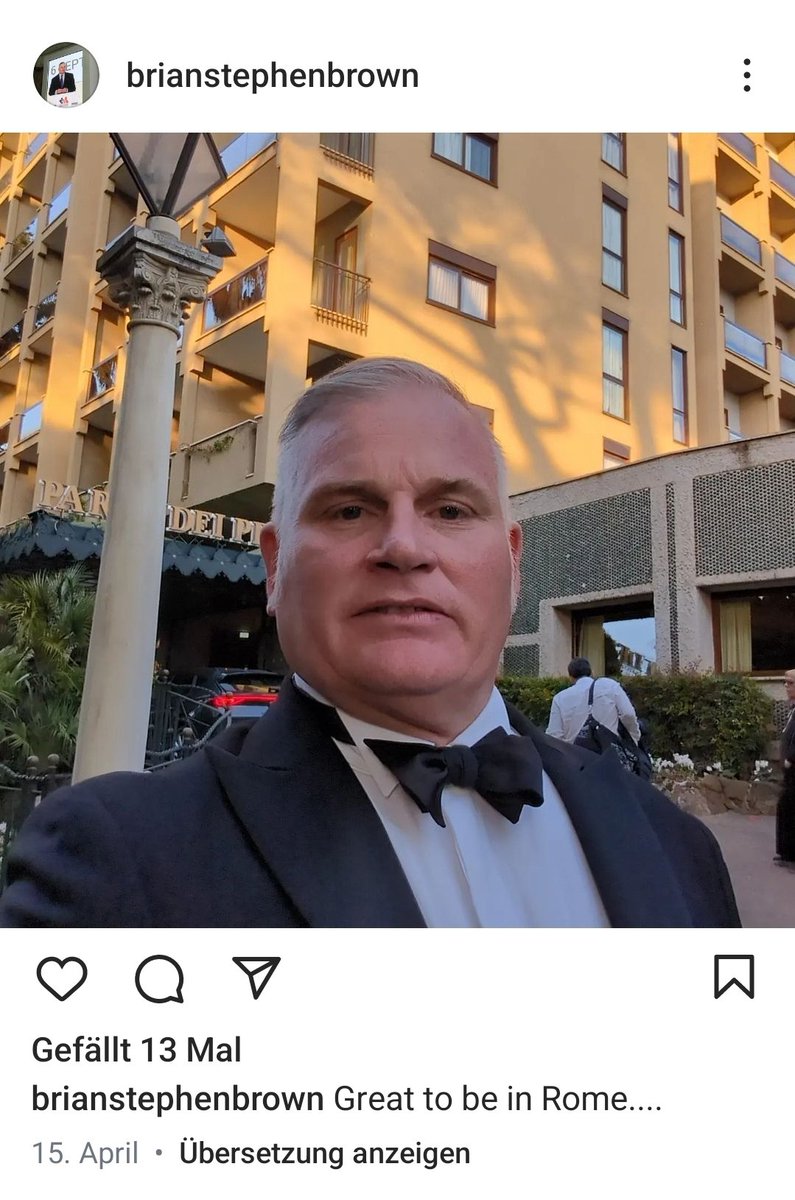 @DoreenReinhard Mit Gloria von Thurn und Taxis und Taxis und Pierre Louvrier haben wir bereits zwei Personen aus dem Umkreis von Konstantin Malofeev. Was liegt näher als nachzusehen, was Glorias Freund Brian Brown im April gemacht hat. Und siehe da: Auch er war in Rom.