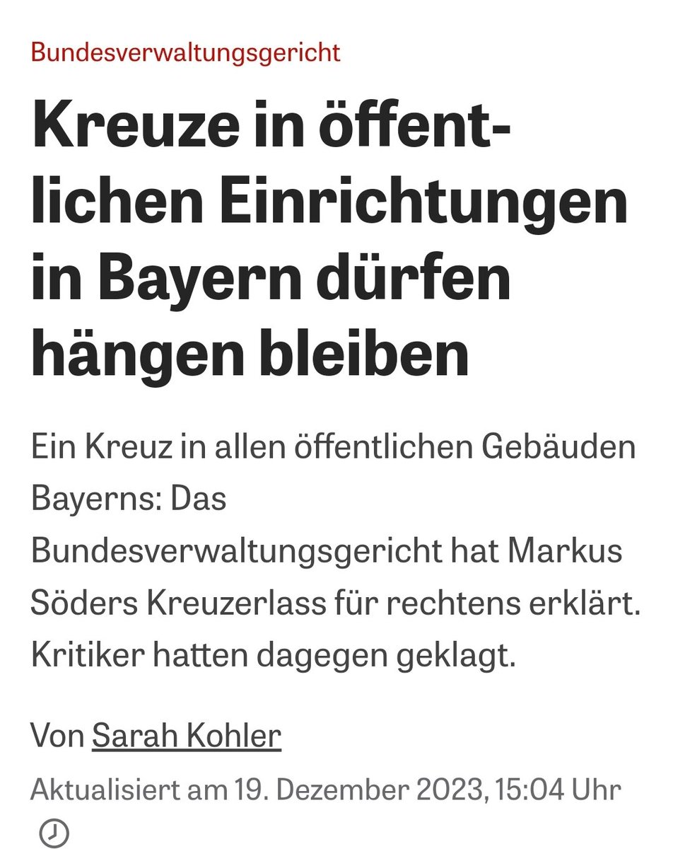 Aber macht euch nichts vor. Das "Genderverbot" in Bayern und anderes Bundesländern ist bereits der erste Schritt in Richtung einer christlichen Staatsdoktrin. Und wenn wir dann auch noch Kruzifixe in Klassenzimmern sehen, sollte klar sein, wohin die Reise geht.
